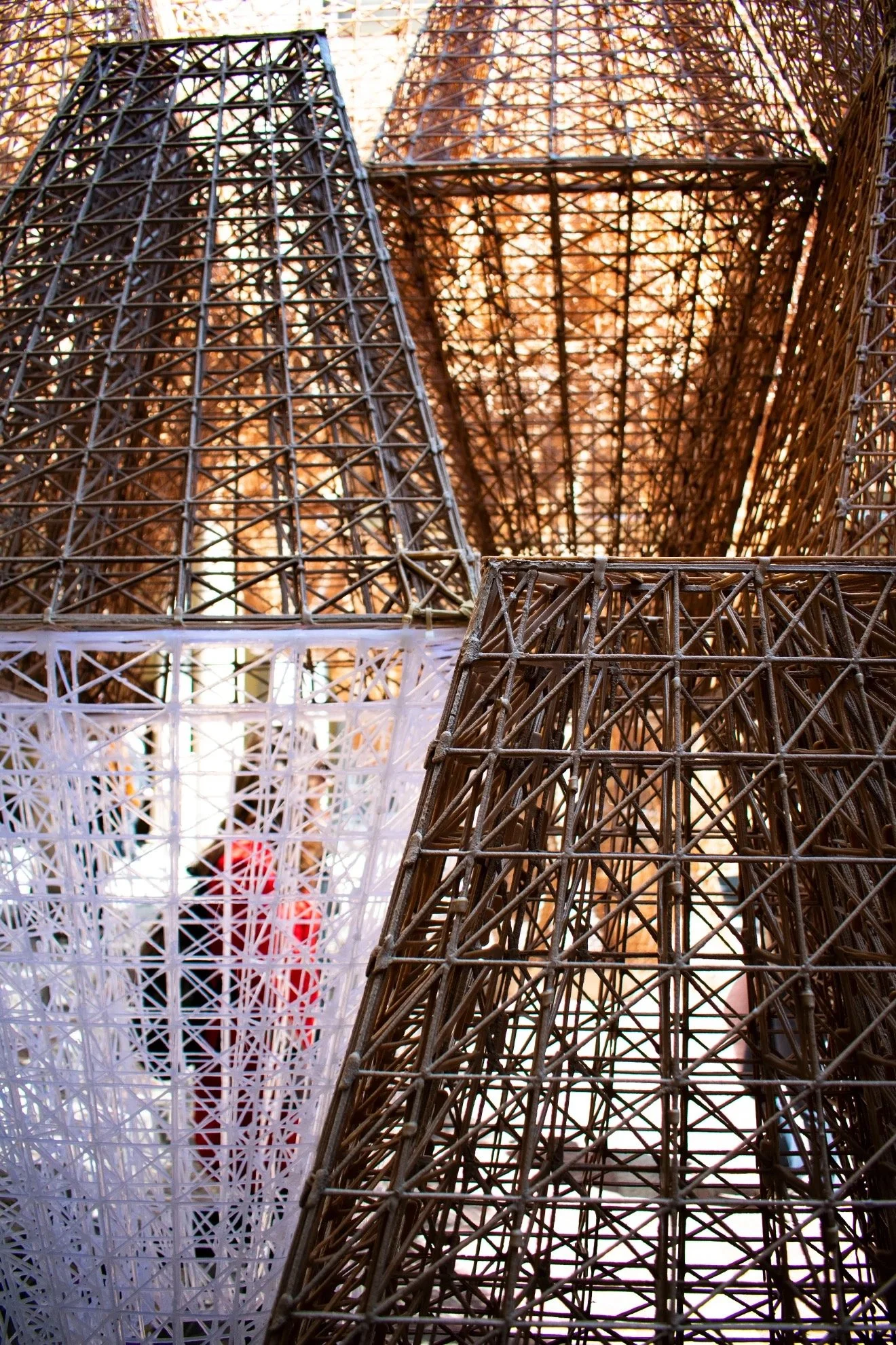 PLA was used to create each of the 3D-printed blocks; a fully compostable bioplastic, created using renewable resources. The translucent sections of the installation are PLA in their purest form, whereas the white parts contain pigment and the defining brown hue seen was created by adding the wood pulp from fir trees. The way that cones grow naturally on these evergreen trees is reminiscent of how the bio-bricks were designed, giving the installation its name 'Conifera'.