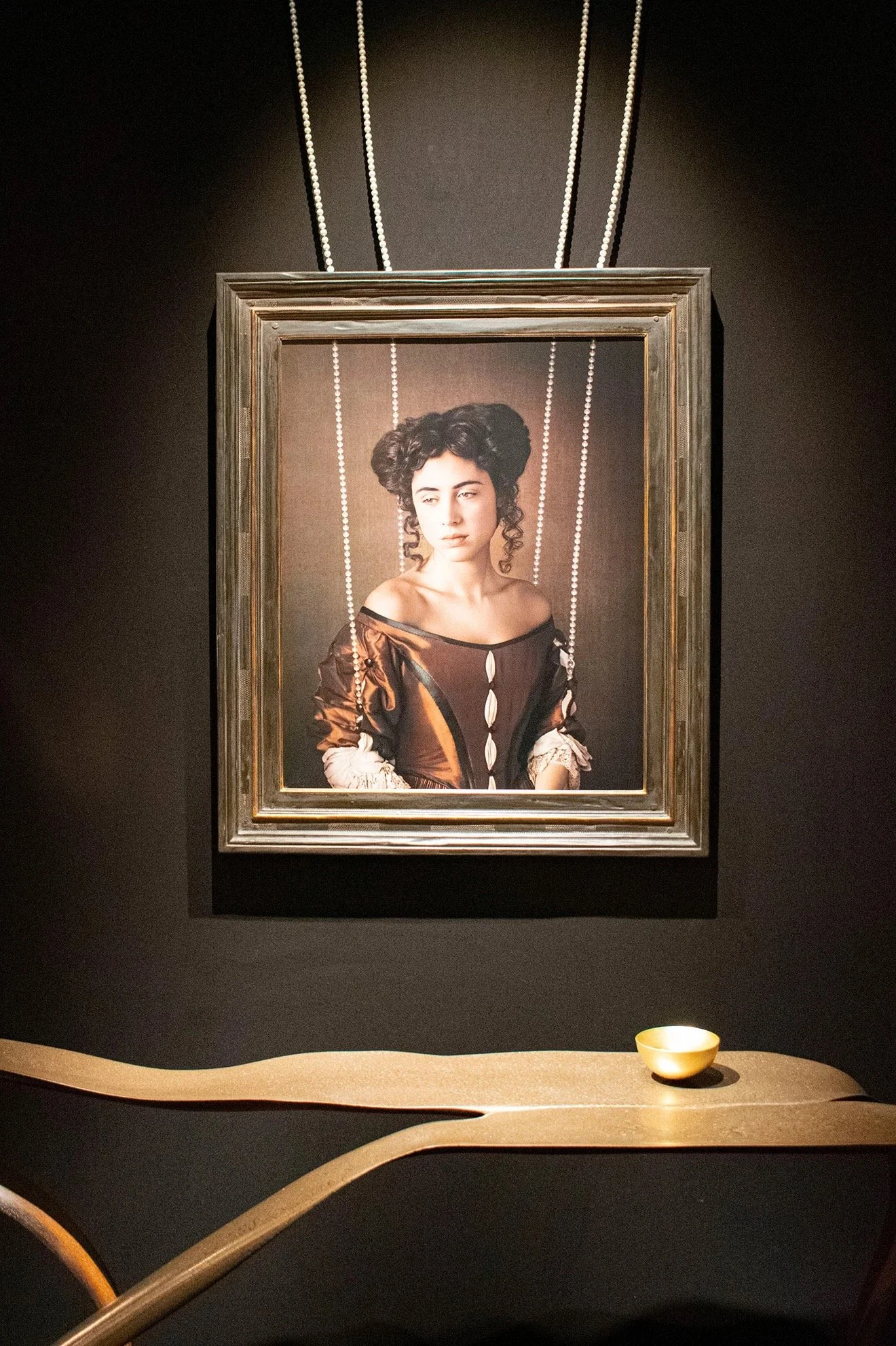 Susie MacMurray's work 'Strange Fruit' intrigued the passing crowds with its elegant yet striking presence. The wall sculpture was constructed with reclaimed military barbed wire and luscious red silk velvet. Finally, the bronze 'Solar' sculpture by Charlotte Mayer presented itself with such an elegance set against the dark walls of the stand, resembling the graceful flight of a bird as its wings spread out.