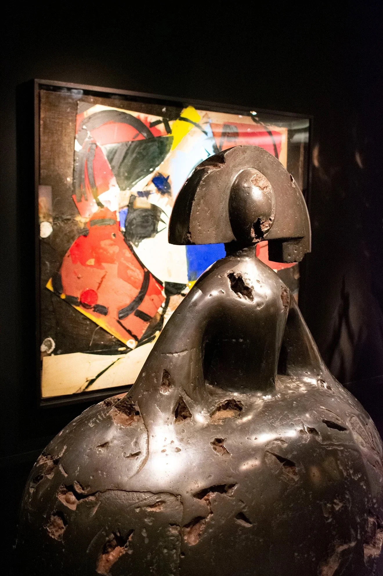 An impressive display of Manolo Valdés' work can be seen on the stand from the bronze sculpture 'Reina Mariana' with the vibrant collage of 'Matisse Como Pretexto' in the background to the striking head sculptures adorned with beautiful and brutalist headpieces, many introducing a form of expression that combines political and social obligations with humour and irony.
