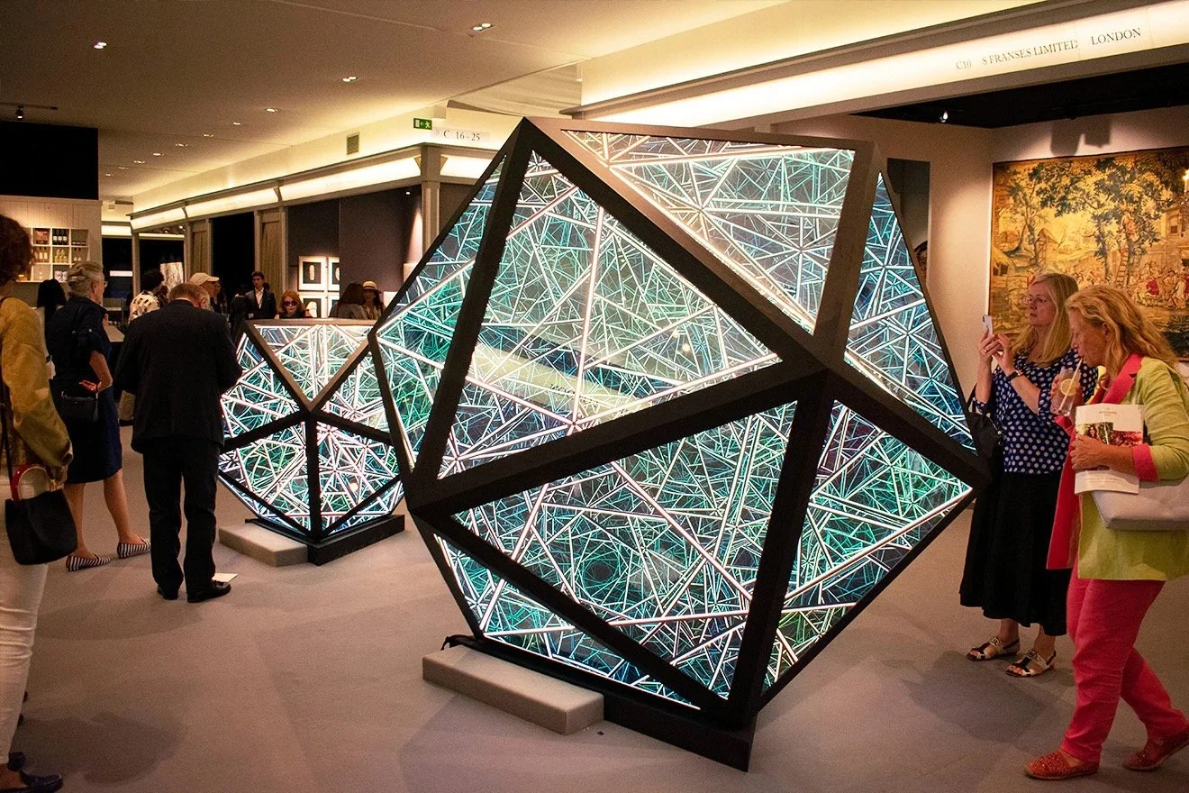 A stand-alone installation from the gallery can also be seen close to the Savills Lounge, showcasing '50" Icosahedron' by British-born, La-based artist Anthony James. The geometric globes have attracted lots of attention at the fair with their attractive display of light, visitors curiously walking around the pieces to attempt to peer further into the glass displays to see reflections.
