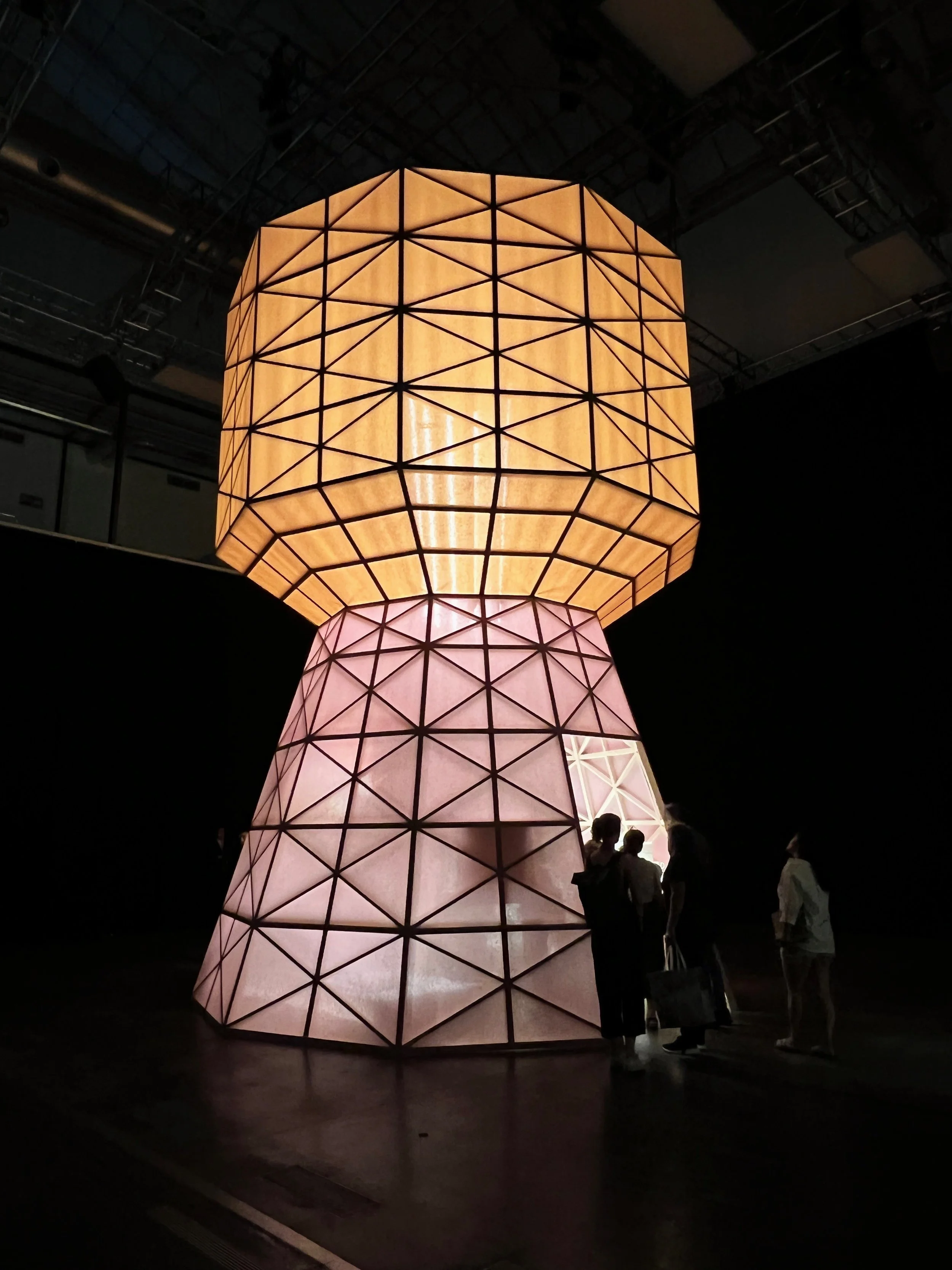Luxury fashion house Hermès erects four large ‘lantern-like’ structures modelled on water towers to house its collection of homewares at La Pelota during Milan Design Week.