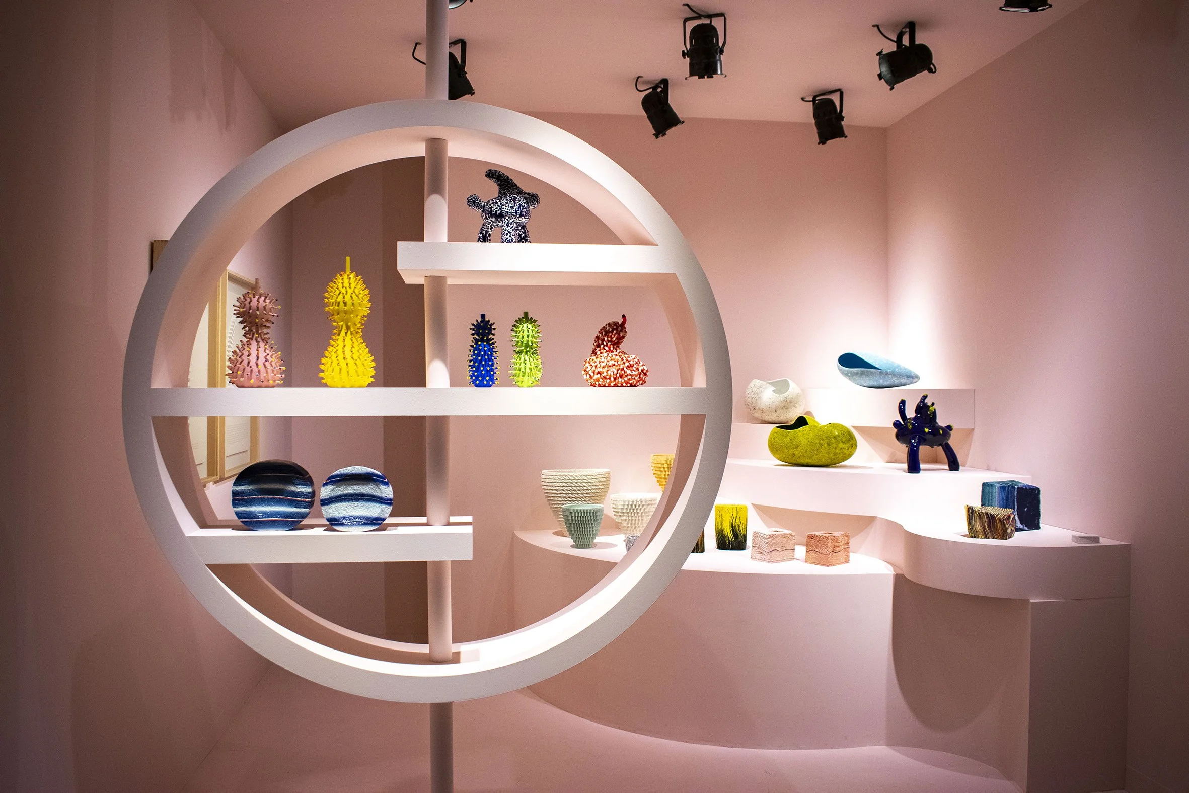 It was Ahryun Lee's instantly recognisable 'candy' style designs that immediately attracted attention to the J. Lohmann Gallery's beautiful pastel pink stand. Enticing visitors to explore more, the theme for this year's display was “Breaking the Mold: Contemporary Korean Ceramics”. Showcasing impressive Korean designs the stand included Jongjin Park's colourful layered vases mimicking multiple layers of paper, cardboard and materials to create abstract vases. Bae Sejin’s intriguing textured vessels were formed with hundreds of small ceramic elements, hand-applied, each of them numbered by the designer to document the lapse of time.