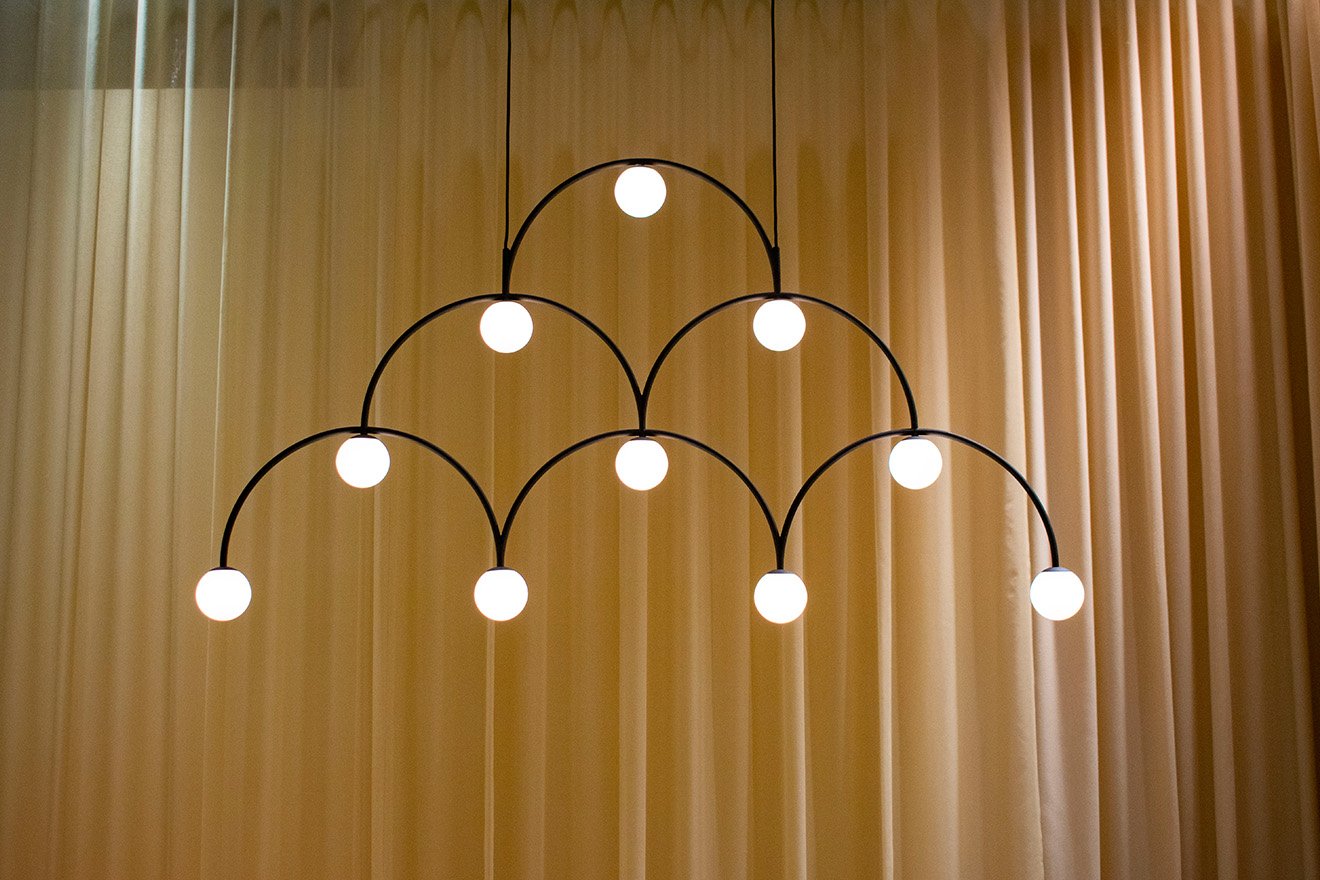 Swedish design and lighting brand Pholc exhibited their impressive collection of contemporary lighting designs, works set against a dramatic backdrop of drapery on their stand, stopping passers-by in their tracks. The centrepiece of the display was the artistic Bounce 169 pendant; a ten bulb matte black design that visually represents electricity bouncing from one lamp to the next. Another design of note was the beautiful Blend pendant lamp by Sabina Grubbeson, featured on the stand in matte black and brass finish. The simple form of the pendant merges design and style from both Scandinavia and Japan.