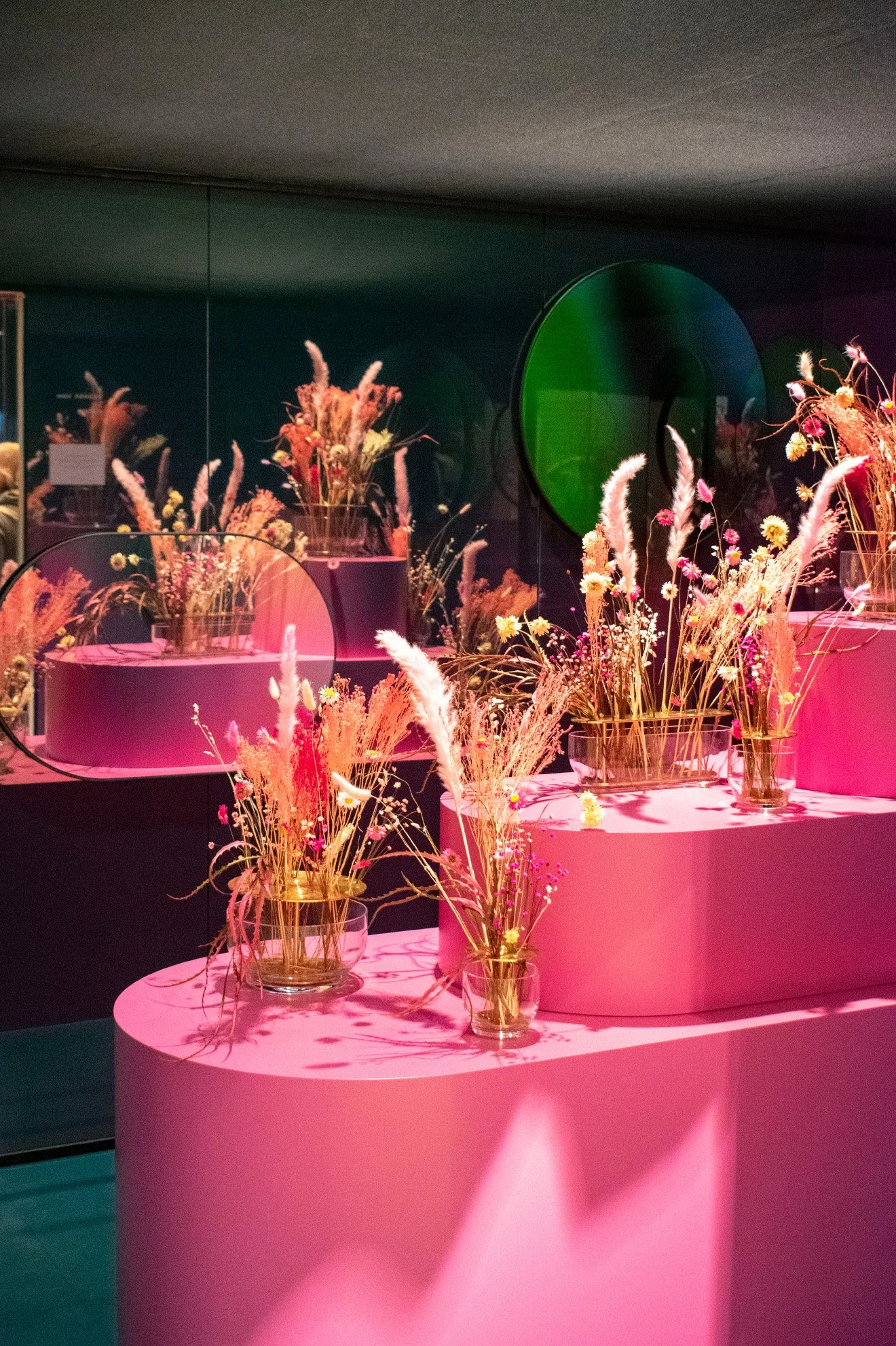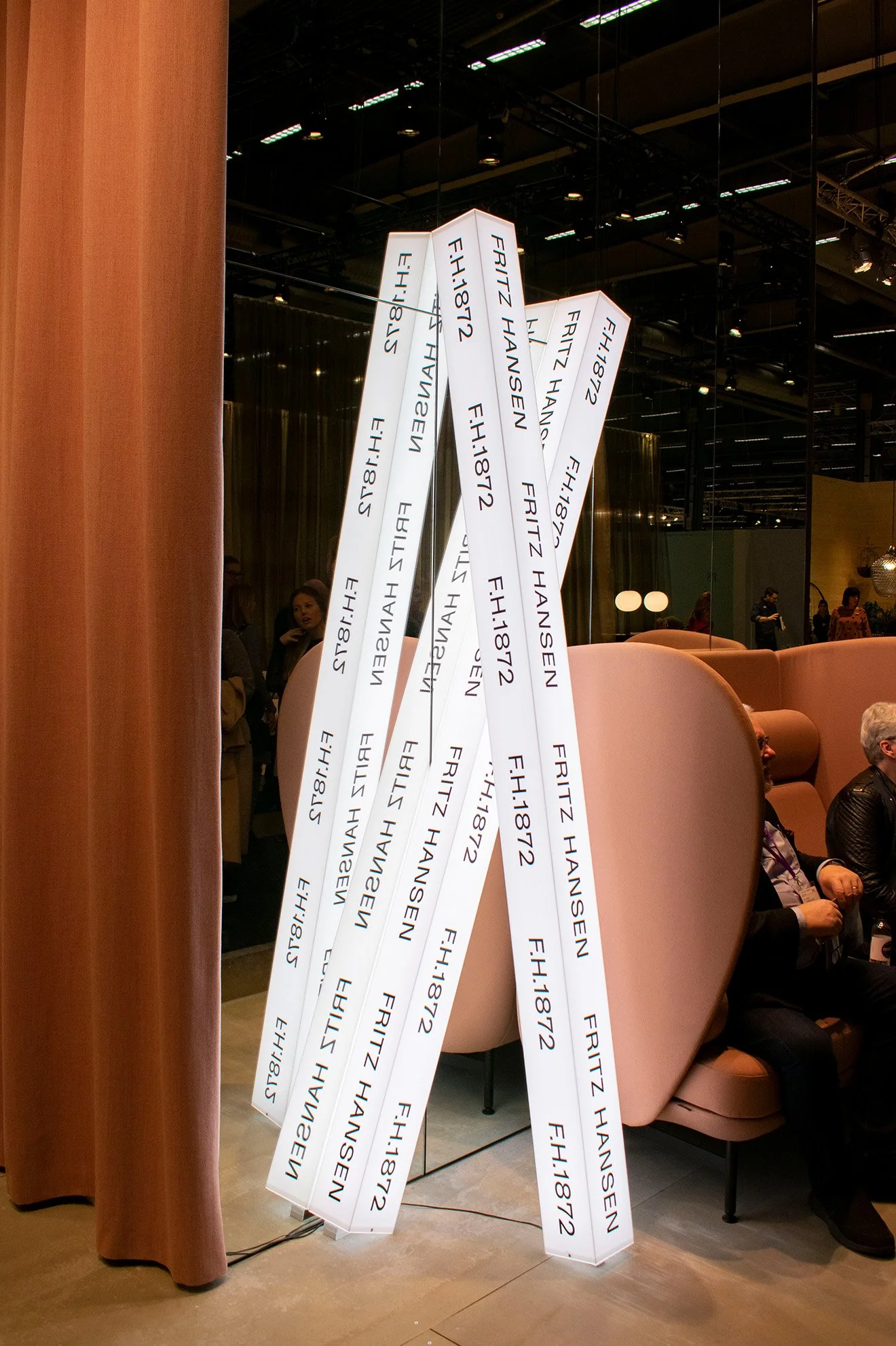 Turning their products into dramatic and vibrant art installations, Fritz Hansen always knows how to attract attention. Set out into a collection of style rooms, each space exhibited a particular product or collection. The Ikebana vases displayed wildflowers and grasses, set against a mirrored backdrop and vibrant pink podium. The vase's unique quality is the way that it can equally distribute flowers, enabling easier and more effective floral displays. In complete contrast, the room adjacent showcased the Cross-Plex range of table lamps, exhibited on clear acrylic podiums of varying heights against a bionic blue background.