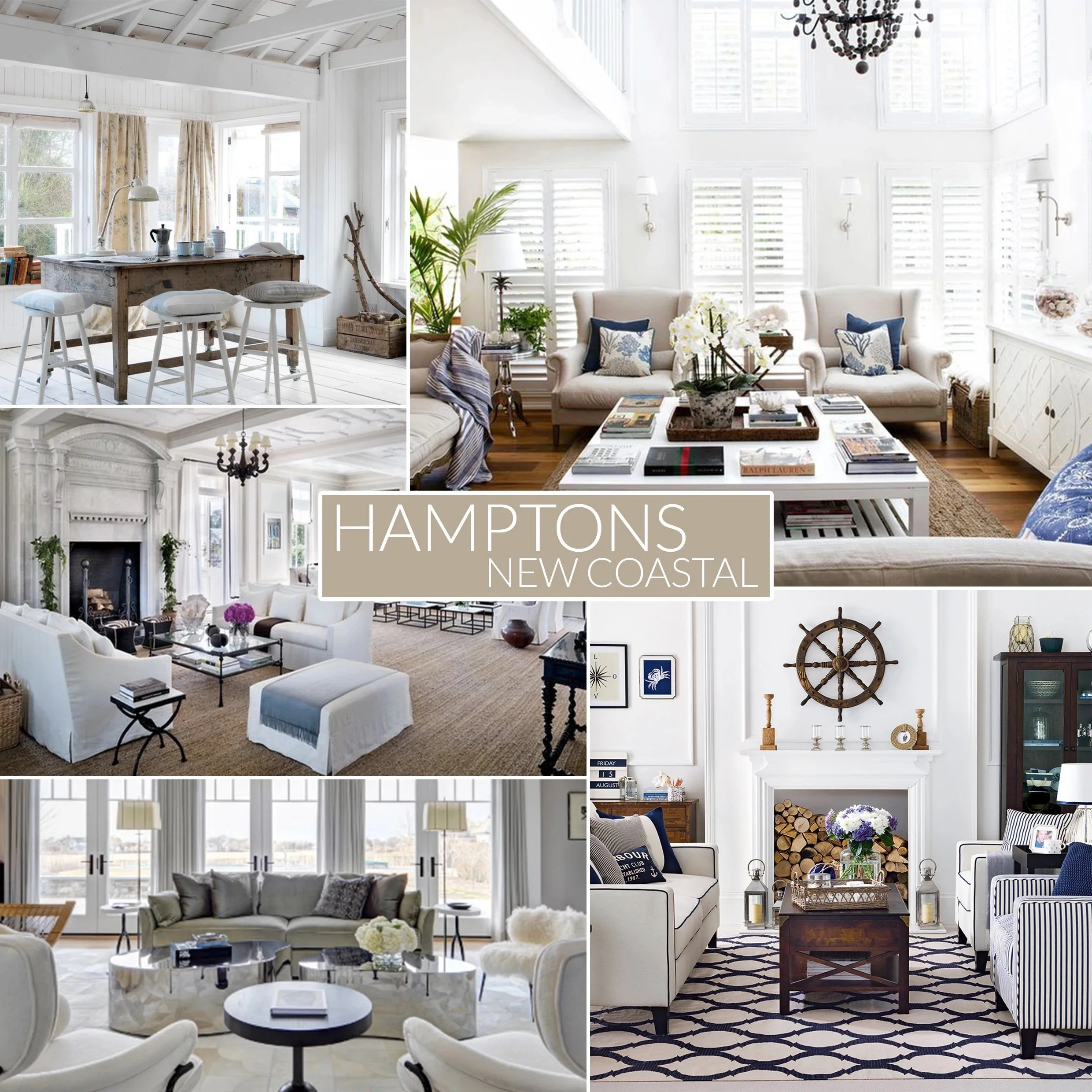 Materials are key when it comes to creating the perfect Hamptons look. With such light interiors, dark woods are a great way to draw attention to select furniture pieces such as a coffee table or sideboard. Paired with white painted and weathered woods, it is about directing the eye around an interior and breaking up sections to create a lived-in and homely look. Many materials in this style will be selected with a reference to the coast, from woven seagrass that creates beautiful and durable rug designs to light linens that can be used in upholstery and curtains. For a contemporary finish, matt black metal wins every time. Used to coat furniture legs, fixtures, fittings and even lighting, dark metal finishes will ensure a defining look. Whilst chrome and stainless steel can be used, it is best to avoid highly reflective materials that pick up and reflect colours in the room as they can make a space appear cooler. Non-reflective surfaces help to split colours giving a greater overall aesthetic to the Hamptons New Coastal style.