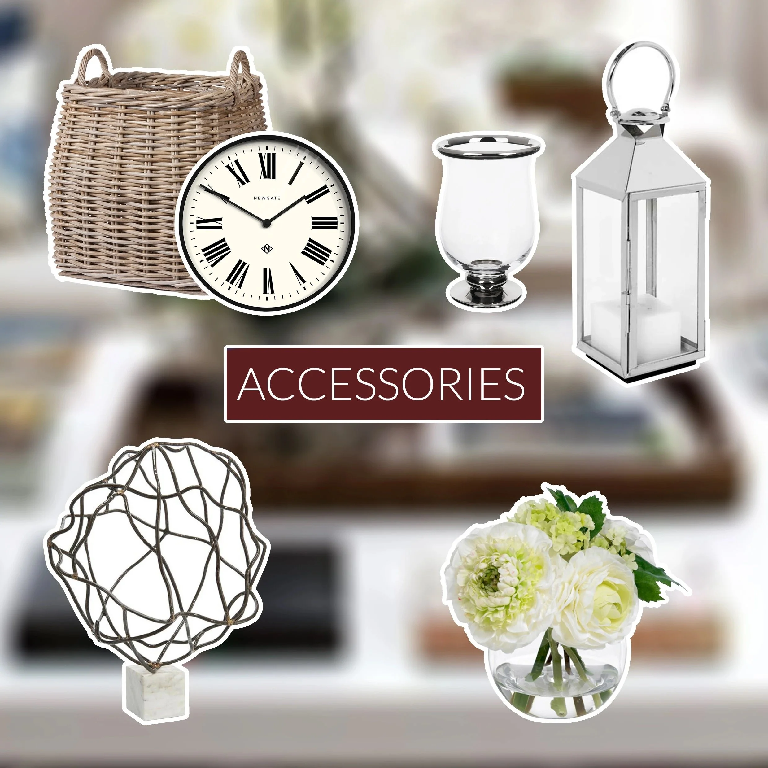 Accessories continue the coastal reference in greater detail. There are no rules when it comes to selecting pieces as it comes down to personal preference, showcasing your own personality and loves. Whilst keeping to a coastal theme, accessories selected above range from the classic storm lanterns and candle holders to more unique and sculptural designs such as the incredible John-Richard 'Brutalist World in a String' which has a subtle navigational reference. The 'Tapered Log Basket' from Garden Trading and the 'Italian Wall Clock' also contain subtle coastal references associated with Hamptons living. As with any interior design, it is important to consider house plants and floral displays within the overall scheme. For those with green thumbs, Fiddle Leaf Figs are an excellent and incredibly popular choice for the time. People less inclined to plant care may want to take the safer option of fake florals and foliage with the excellent selection of realistic products on the market at the moment including the 'Small Mixed Bouquet' available from Luxdeco.