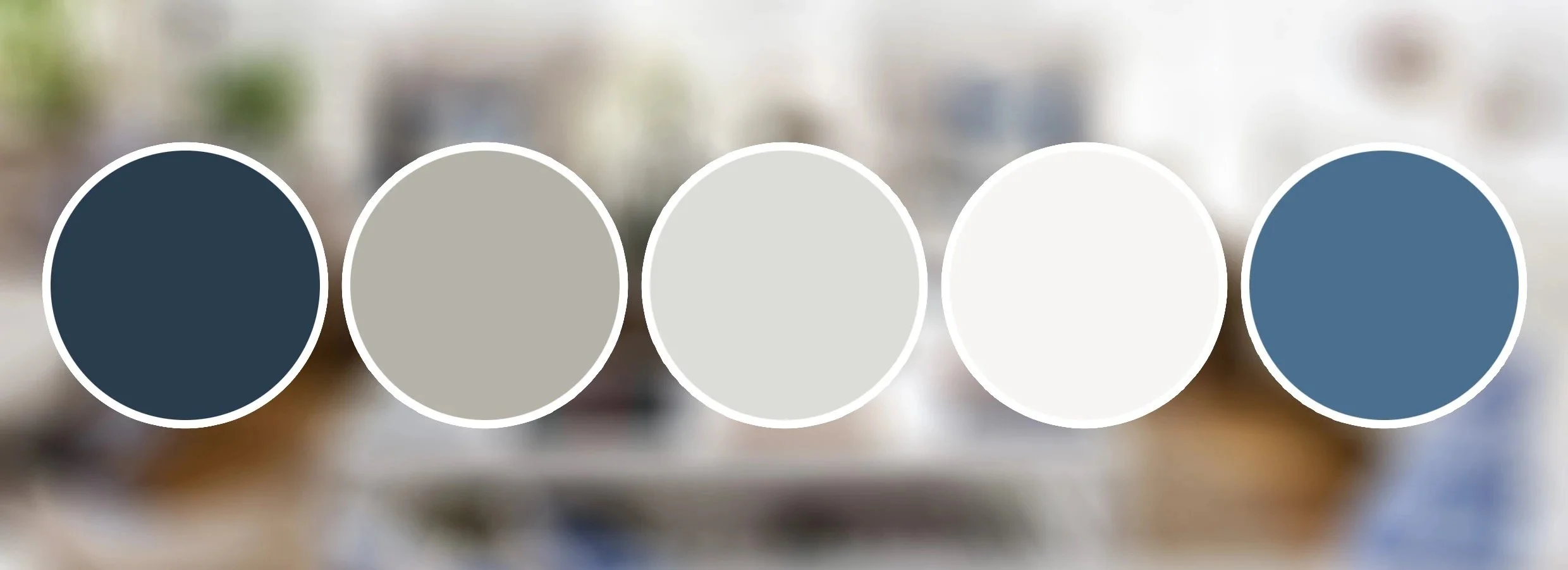 All paint colours have been selected from Fired Earth. From left to right: Carbon Blue, Dowager, Garden Folly, Silica White and Bamiyan Blue.