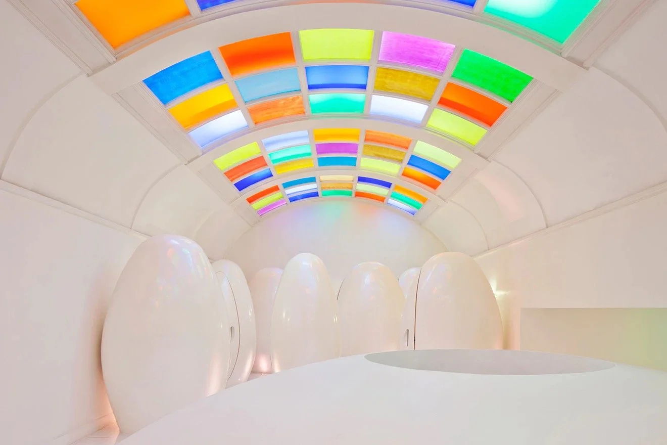 It would not be a design feature without mentioning the fun and somewhat mysterious pod toilets. A staple for the sketch experience, visitors make their way up the curved staircases above the East Bar into a large white room, framed by its multi-coloured glass ceiling and full of egg-shaped pods. With the unwritten rule "Always judge a restaurant by its toilets" it is safe to say that a visit to sketch will take you out of this world.