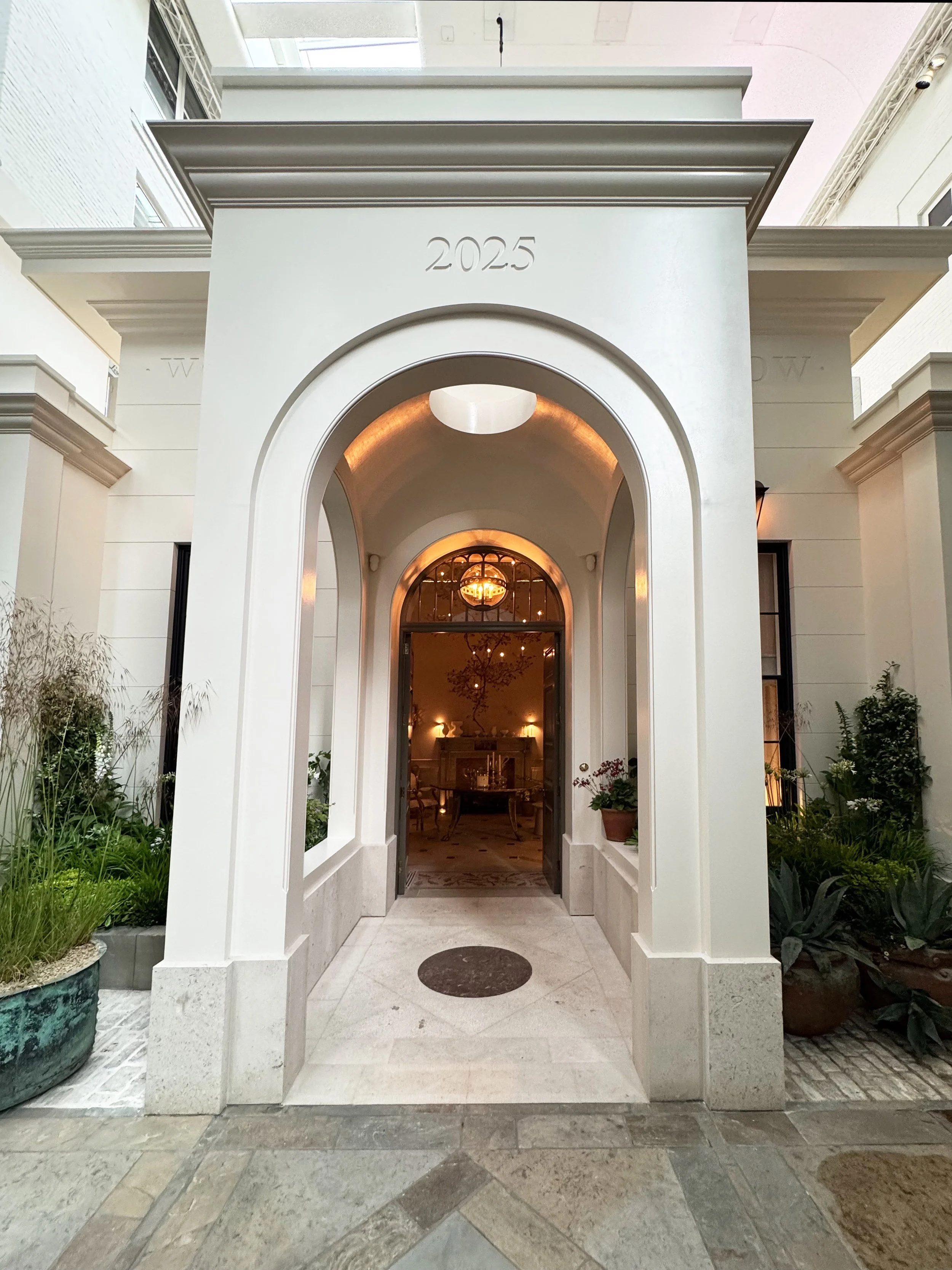 Lush, textural foliage gently frames the garden’s pathways, with olive trees, flowering perennials, and climbing roses forming a living tapestry of colour, scent, and form. Hoyle’s signature romanticism is evident throughout—this is not just a garden, but a sensory prologue to the interior story that follows. The entrance garden sets an early benchmark for craftsmanship and atmosphere, offering a moment of quiet beauty before visitors step inside the showhouse proper.