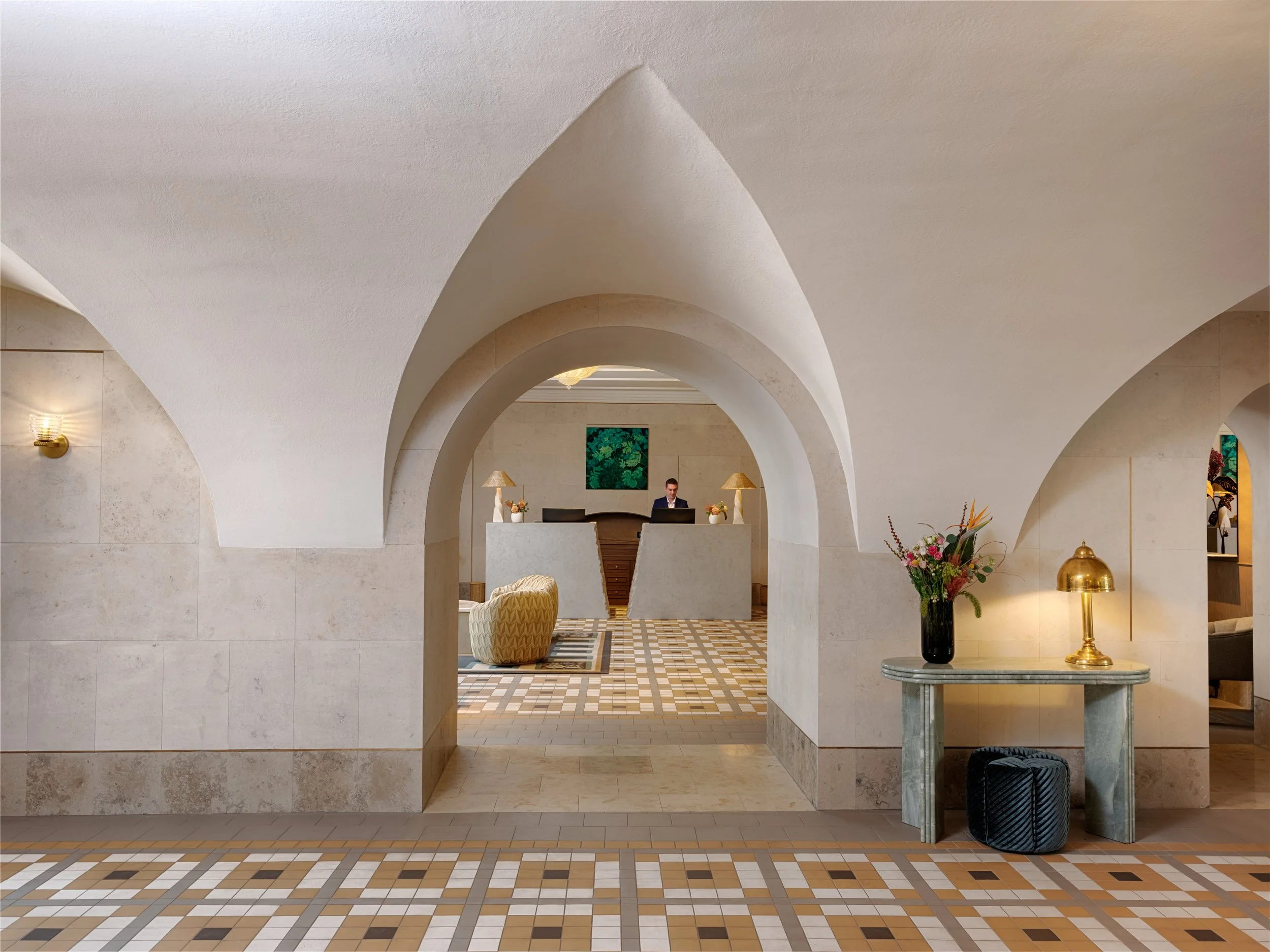 The lobby at Stradom House does not announce itself in a conventional way. There is no singular, dramatic gesture; instead, it reveals itself through layers. Vaulted ceilings, original and weighty, anchor the space, while contemporary interventions sit quietly within them.